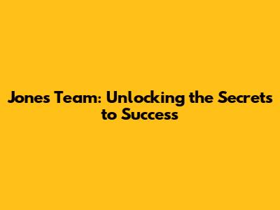 Jones Team: Unlocking The Secrets To Success
